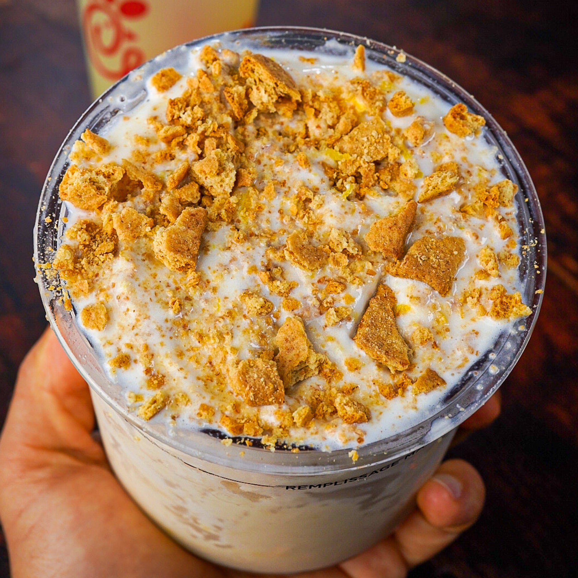 - Add all your ingredients into your pint. Use small hand blender and mix till smooth.